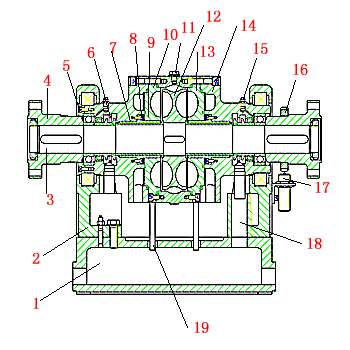 水力測功機(jī)其結(jié)構(gòu)是由一架于滾動軸承上可擺動的外殼和架于主軸上的轉(zhuǎn)子組成。動力機(jī)輸出的機(jī)械能在這里轉(zhuǎn)化為熱能,并有進(jìn)入殼體的水吸收而排出帶走。轉(zhuǎn)子凹坑與左右側(cè)殼凹坑形成工作腔,使水產(chǎn)生渦流,帶走熱能。